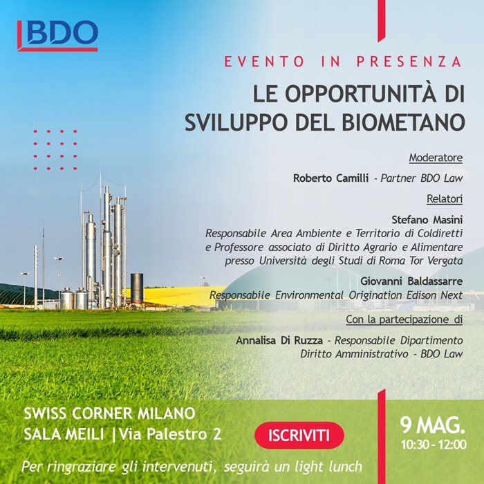 L'evento rappresenta l'occasione per comprendere, grazie al contributo di due esponenti di eccellenza del mondo dell’agricoltura e dell’industria, quali sono le strade da percorre per sviluppare il settore del biometano, affinché possa rappresentare un vettore strategico per la transizione energetica del nostro Paese.