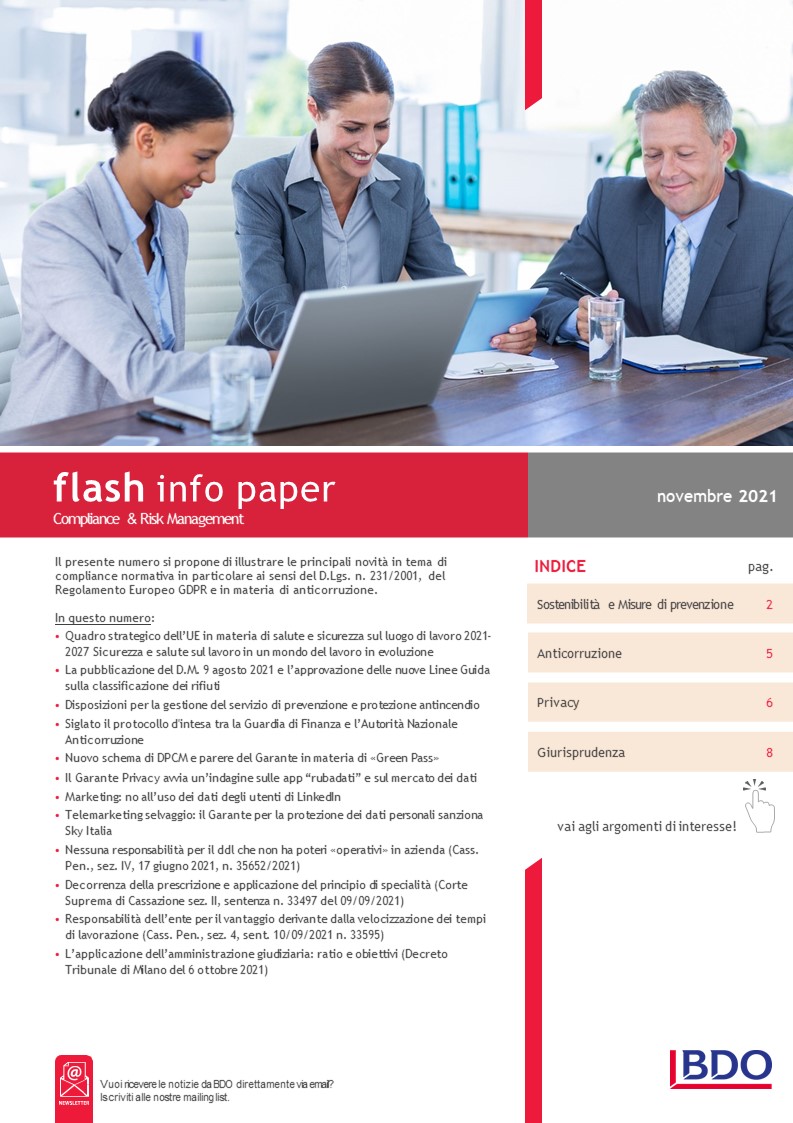 Il presente numero si propone di illustrare le principali novità in tema di compliance normativa in particolare ai sensi del D.Lgs. n. 231/2001, del Regolamento Europeo GDPR e in materia di anticorruzione.