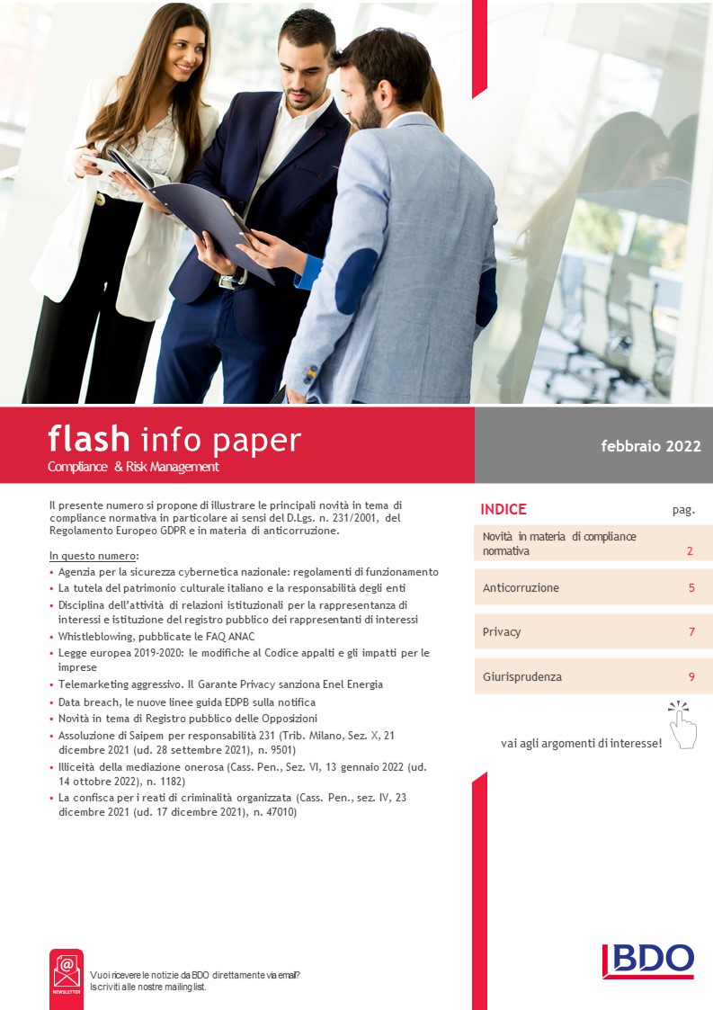 Il presente numero si propone di illustrare le principali novità in tema di compliance normativa in particolare ai sensi del D.Lgs. n. 231/2001, del Regolamento Europeo GDPR e in materia di anticorruzione.
