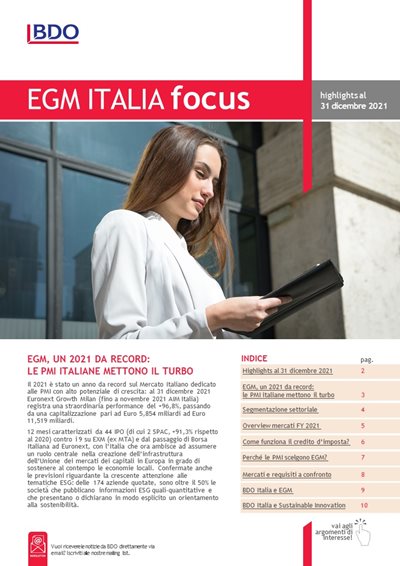 BDO Italia ha pubblicato i dati relativi a uno studio sulle IPO nel segmento EGM della Borsa Italiana negli ultimi sei mesi del 2021.