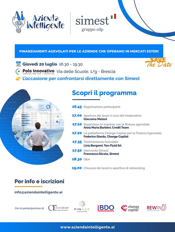 L'evento rappresenta l'occasione per confrontarsi direttamente con Simest che illustrerà i nuovi bandi in uscita.